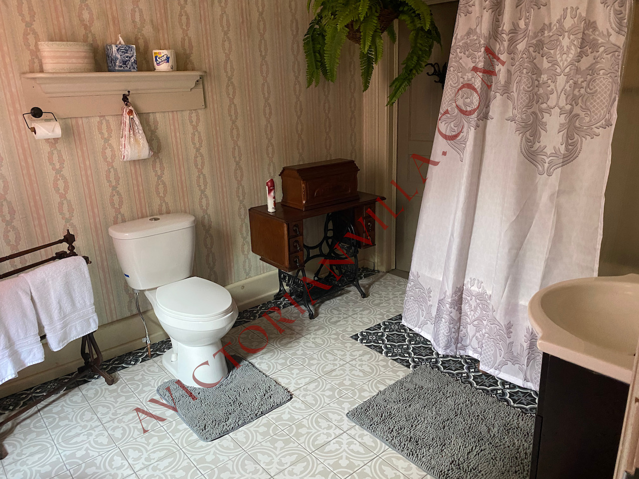 Enchanting second floor country bed chamber with private balcony overlooking the gazebo, fountain and formal gardens. The bed chamber has an iron bed and is air conditioned in the summer. Private clawfoot tub-shower bath.