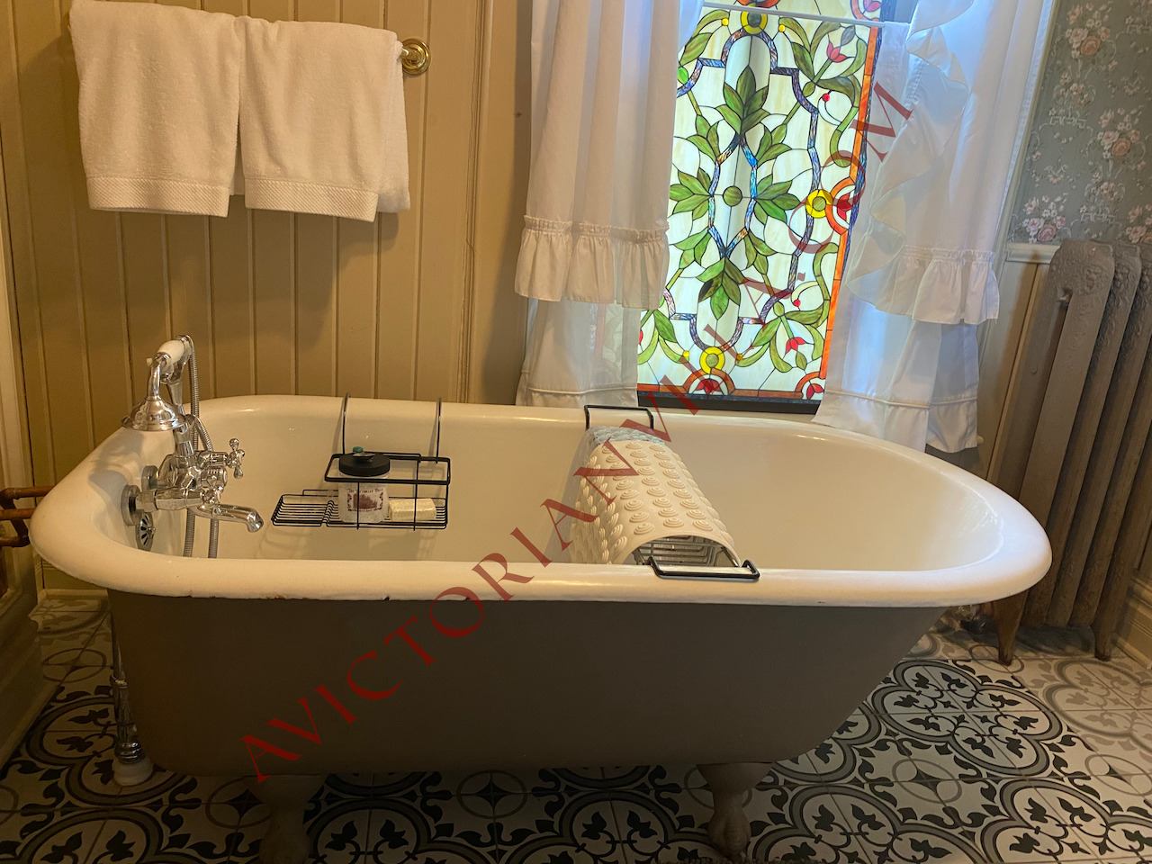 - Antique Clawfoot Soaking Tub with Hand-Held Shower Bath