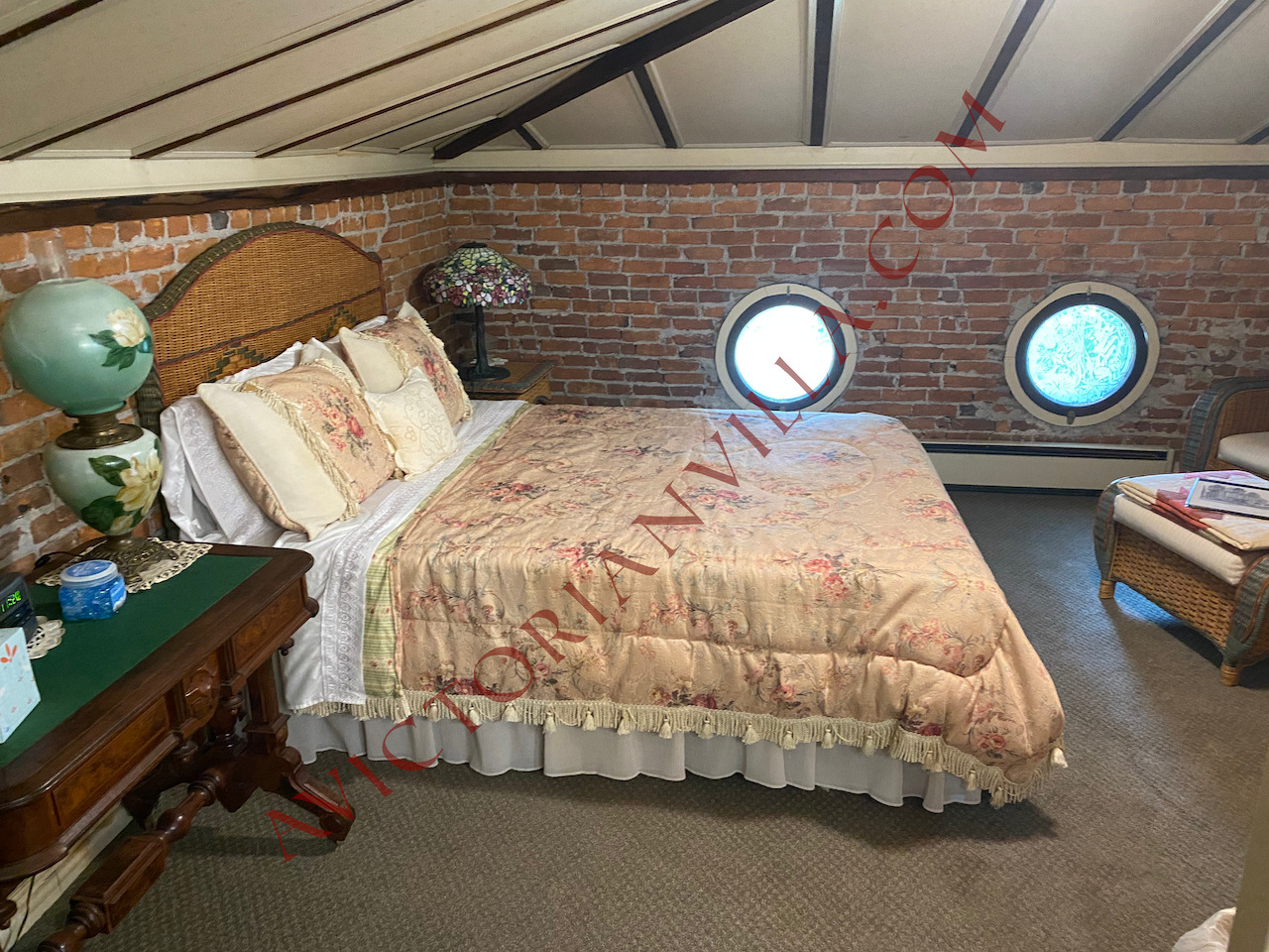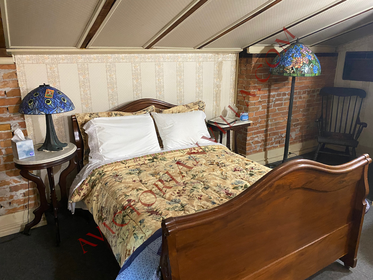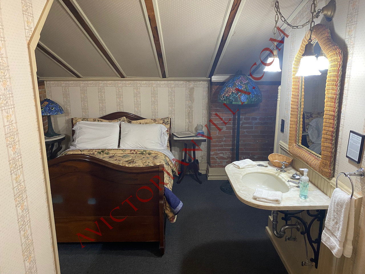 Secluded and cozy, third floor one-room suite with Victorian Sleigh bed; Private modern shower bath; Air Conditioning and Tower Access.