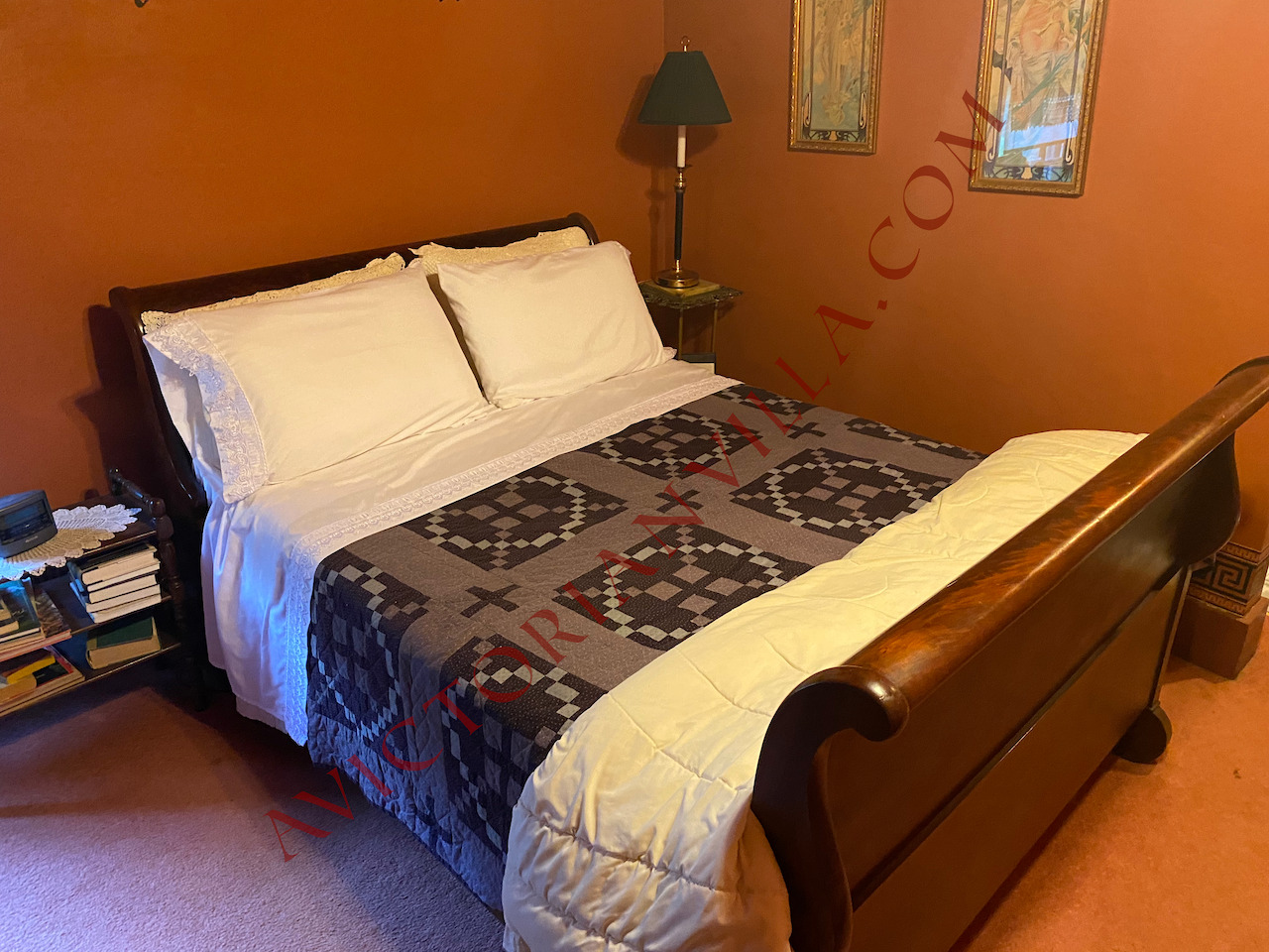 Secluded and Cozy, second floor 1890's Bed Chamber with beautiful Sleigh bed, Gas-Light-London memorabilia. Private modern tub-shower bath & air conditioning.